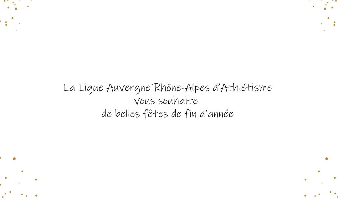 Les Bureaux de la Ligue Auvergne Rhône-Alpes d’Athlétisme seront fermés du mercredi 24 décembre 2025 au dimanche 4 janvier 2026 inclus.